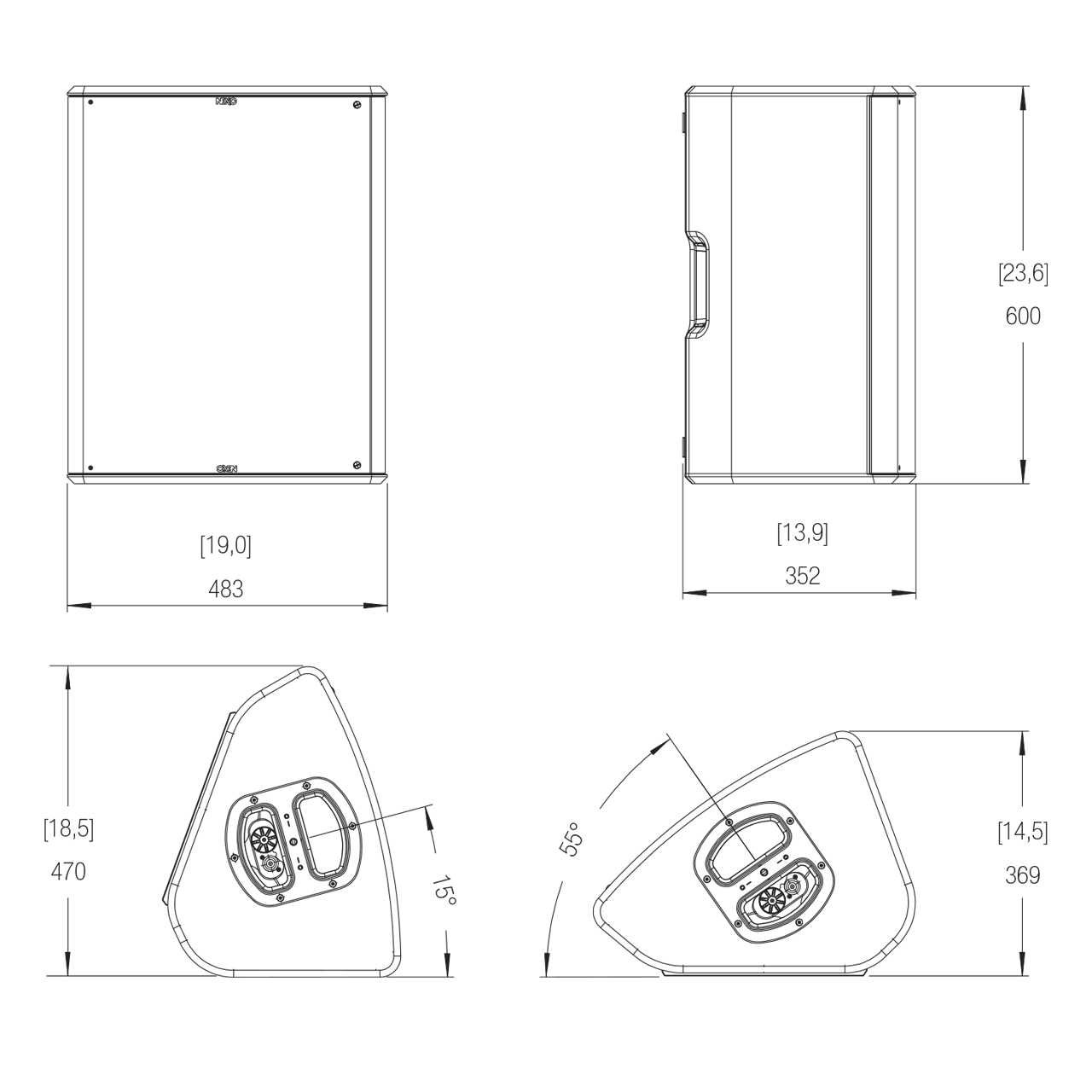 - 4 x NL4 Speakon 4 cực, hai bên tay cầm và 2 cổng sau thùng loa (bản touring)