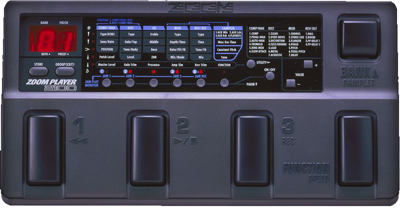 Zoom 2100 là pedal hiệu ứng guitar đa năng được sản xuất bởi thương hiệu Zoom của Nhật Bản. Sản phẩm được trang bị hơn 100 hiệu ứng khác nhau, bao gồm: