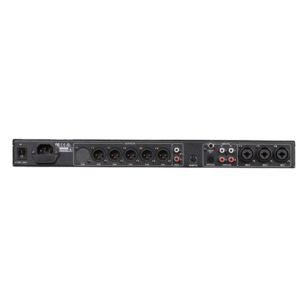 - 5 kênh đầu ra chính (XLR): Hỗ trợ LP/HP, EQ tham số 4 băng tần, Limiter và Delay điều chỉnh đến 110 ms.