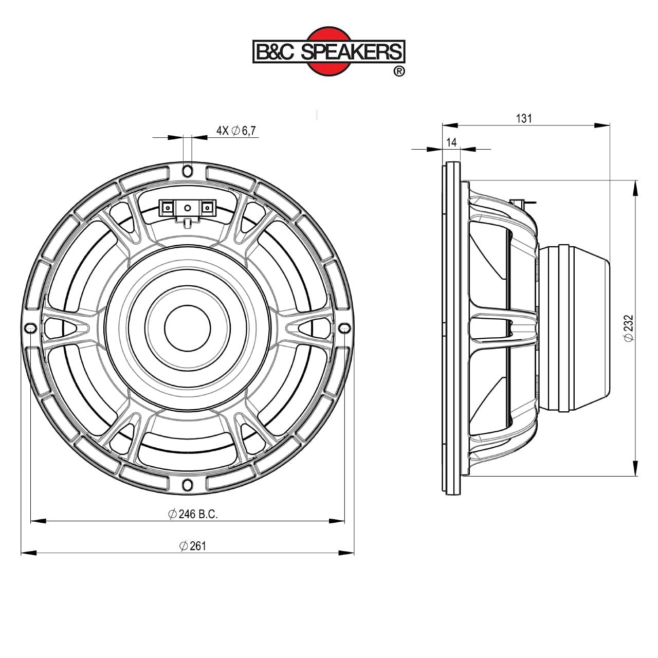 Là củ loa sub/low bass 10 inch của B&C Speakers, viền cao su, tối ưu cho dải thấp và thùng gọn.
